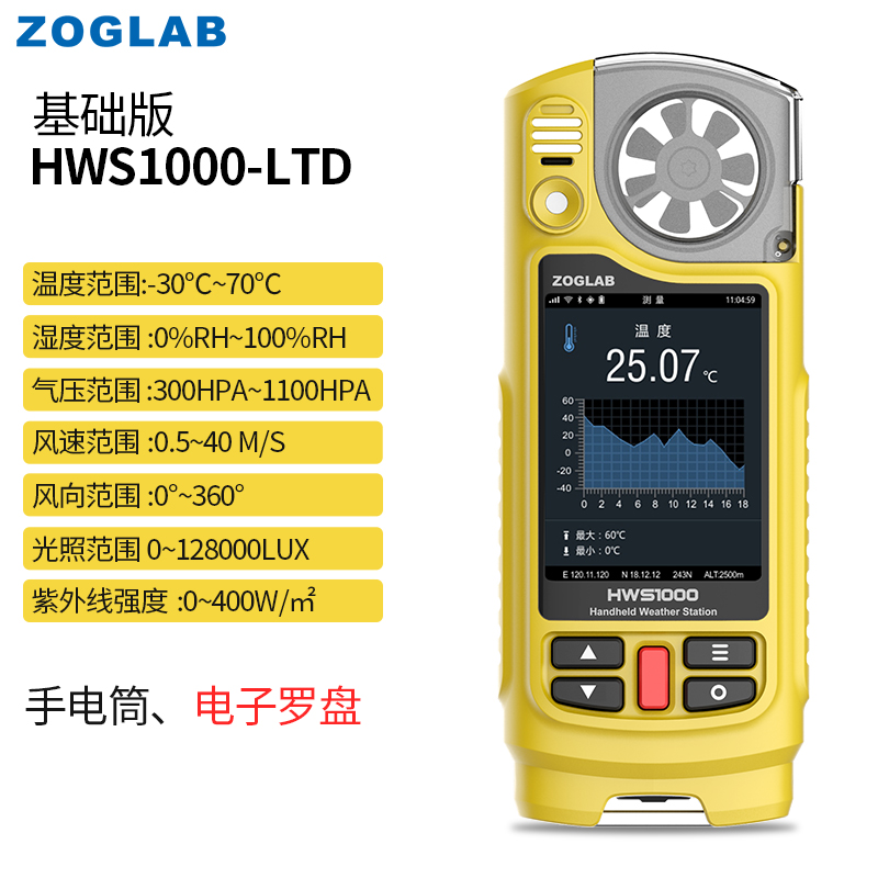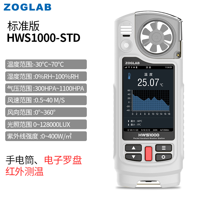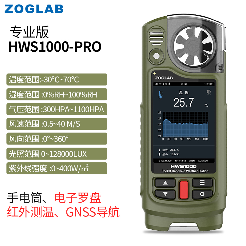 • ZOGLAB佐格多功能手持氣象儀溫濕度計(jì)壓力風(fēng)速風(fēng)向紫外線GNSS導(dǎo)航