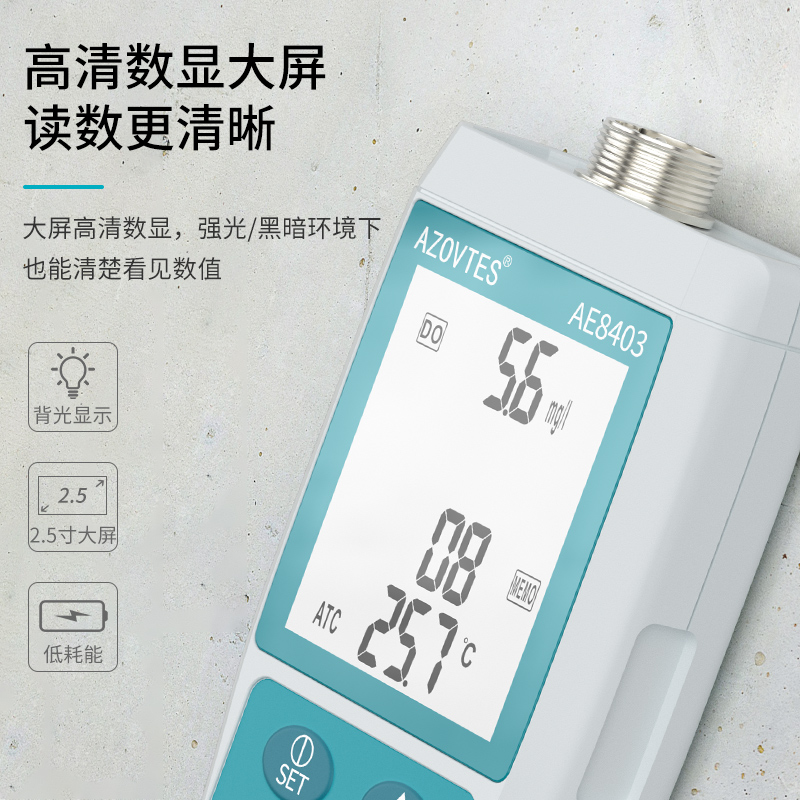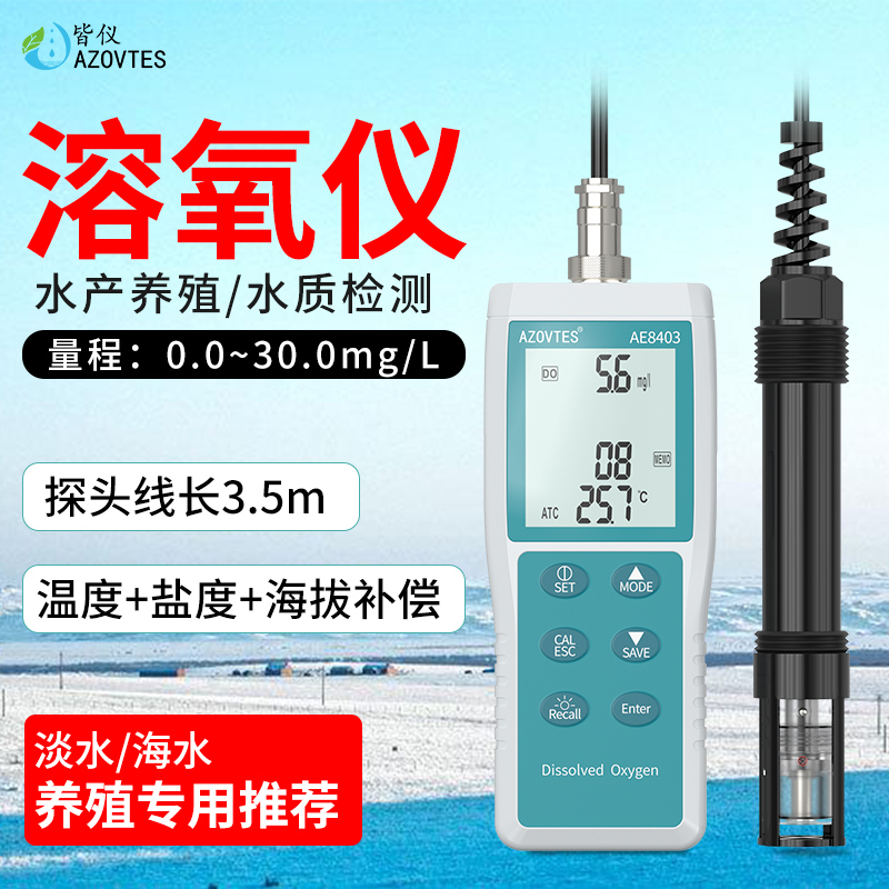 皆儀AE8403是一款高靈敏便攜式溶氧儀,0~30mg/L大量程,標(biāo)配3.5米加長探頭、2.5寸高清數(shù)顯大屏、99筆數(shù)據(jù)存儲、溫度/鹽度/海拔補(bǔ)償,可廣泛運(yùn)用于淡/海水養(yǎng)殖,污水處理、工業(yè)廢水、環(huán)境檢測等諸多領(lǐng)域的溶氧測量。